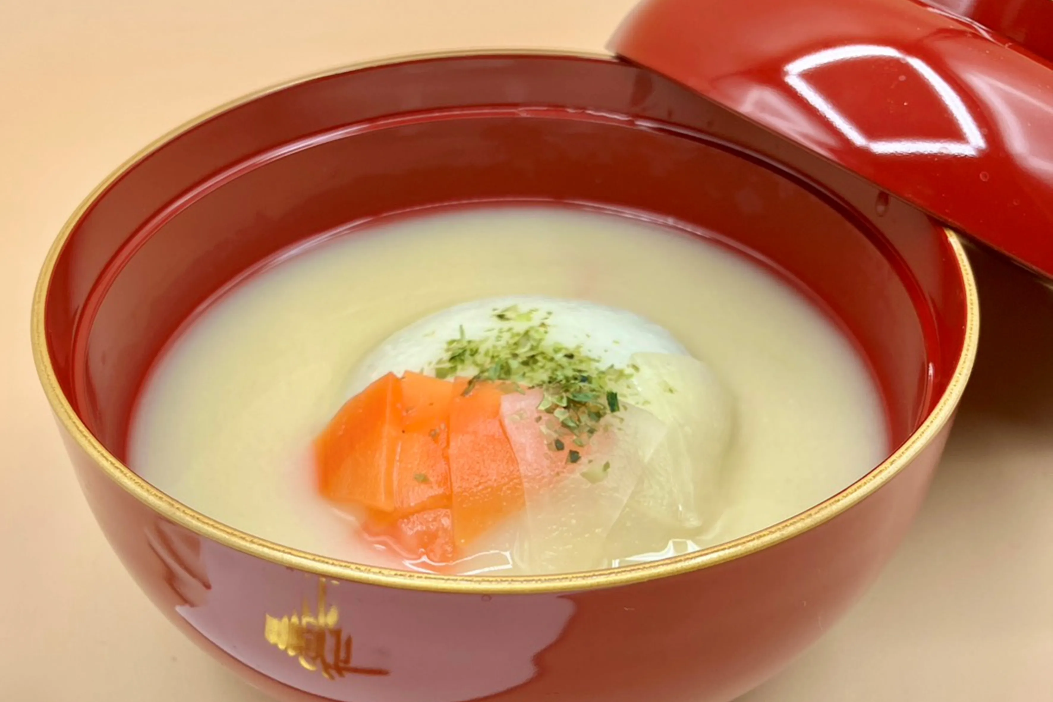 例年好評!白味噌仕立ての汁にあんこ入りのお餅を浮かべた、香川県の郷土料理です。本場・讃岐のシェフが手作りした本格的な味わいをどうぞ。
