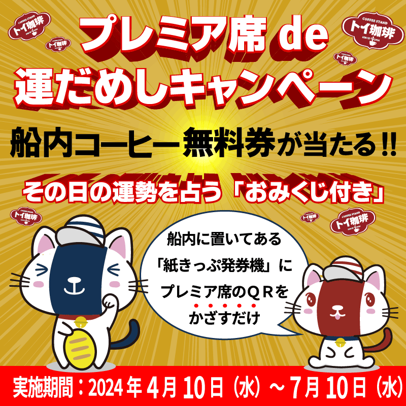 大人気の「船内コーヒー」が当たる!プレミア席de運だめしキャンペーン!