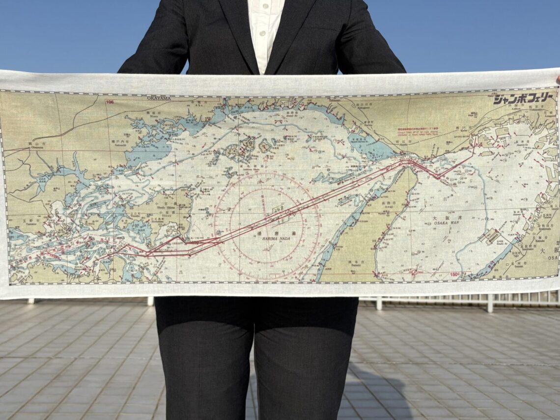 ジャンボフェリーの航路を描いた『海図手ぬぐい』