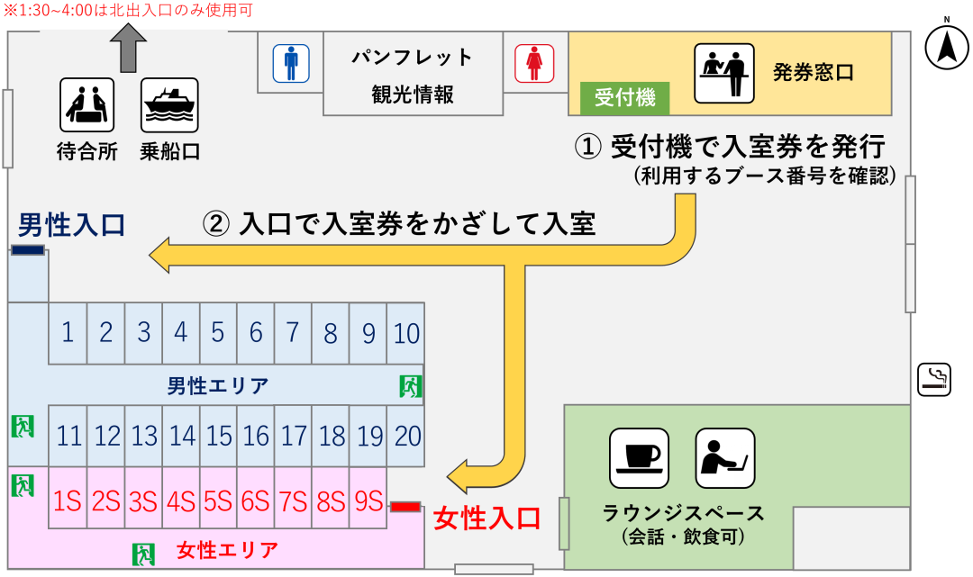 ※男女でエリアが分かれているため、安心してご利用いただけます。