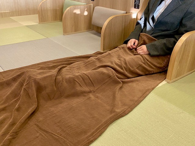 男女別の休憩ブース「ちょっとこま」でひと休みしたら、深夜1:00発のフェリーに乗船。