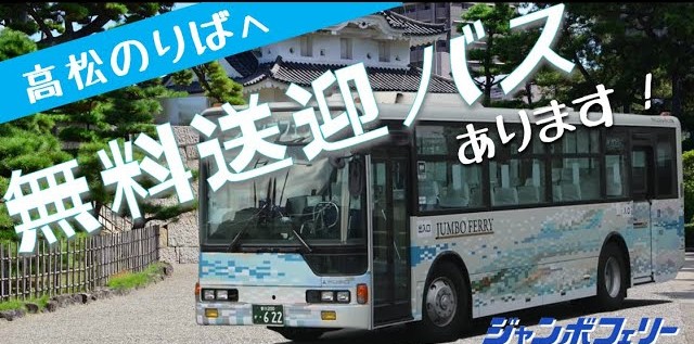 神戸三宮からフェリーで高松へ移動し、高松駅までは無料送迎バスを利用。