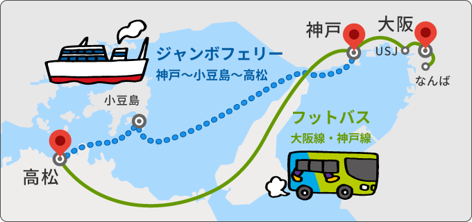 そこで神戸方面からの移動手段としておすすめしたいのが、「ジャンボフェリー」です。