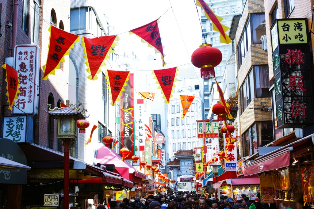 朱色を基調にした街並みは、毎年年末~年始にかけて数百もの中国提灯で彩られ、中国情緒たっぷりにライトアップされます(南京町ランターンフェア)。